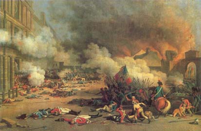 La prise des Tuileries : vue du côté de la cour. Une des reproductions montrées pendant le circuit. |
